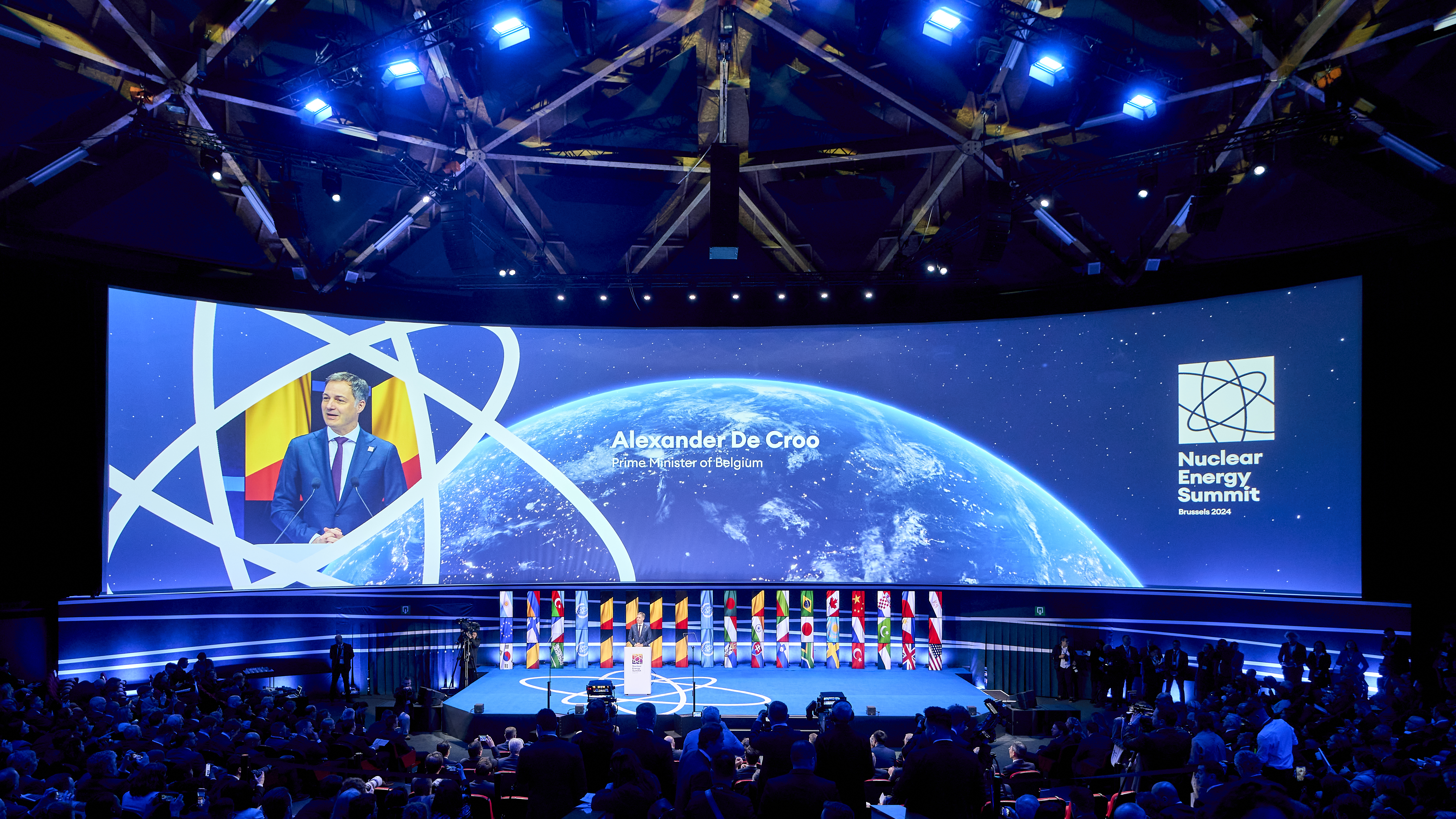 For the FPS Chancellery of the Prime Minister, we designed and produced the first-ever Nuclear Energy Summit at Brussels Expo. Co-hosted by Belgium and the IAEA, the event gathered 37 world leaders and global experts to discuss the role of nuclear energy in a net-zero future, with the Atomium as a fitting backdrop.